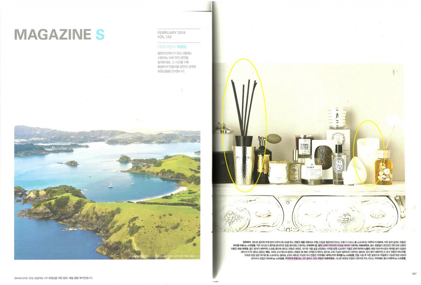 제목 매거진 S(Feb.2014) 타이틀 magazine S (Feb.2014) 등록일 2018-11-30 조회수 6200 - 공간을 향기롭게 가꾸는 홈프래그런스 -Baobab Collection : 일렉트럼 dark 디퓨저(케프런)Aromaco : LED 캔들(M) 목록으로